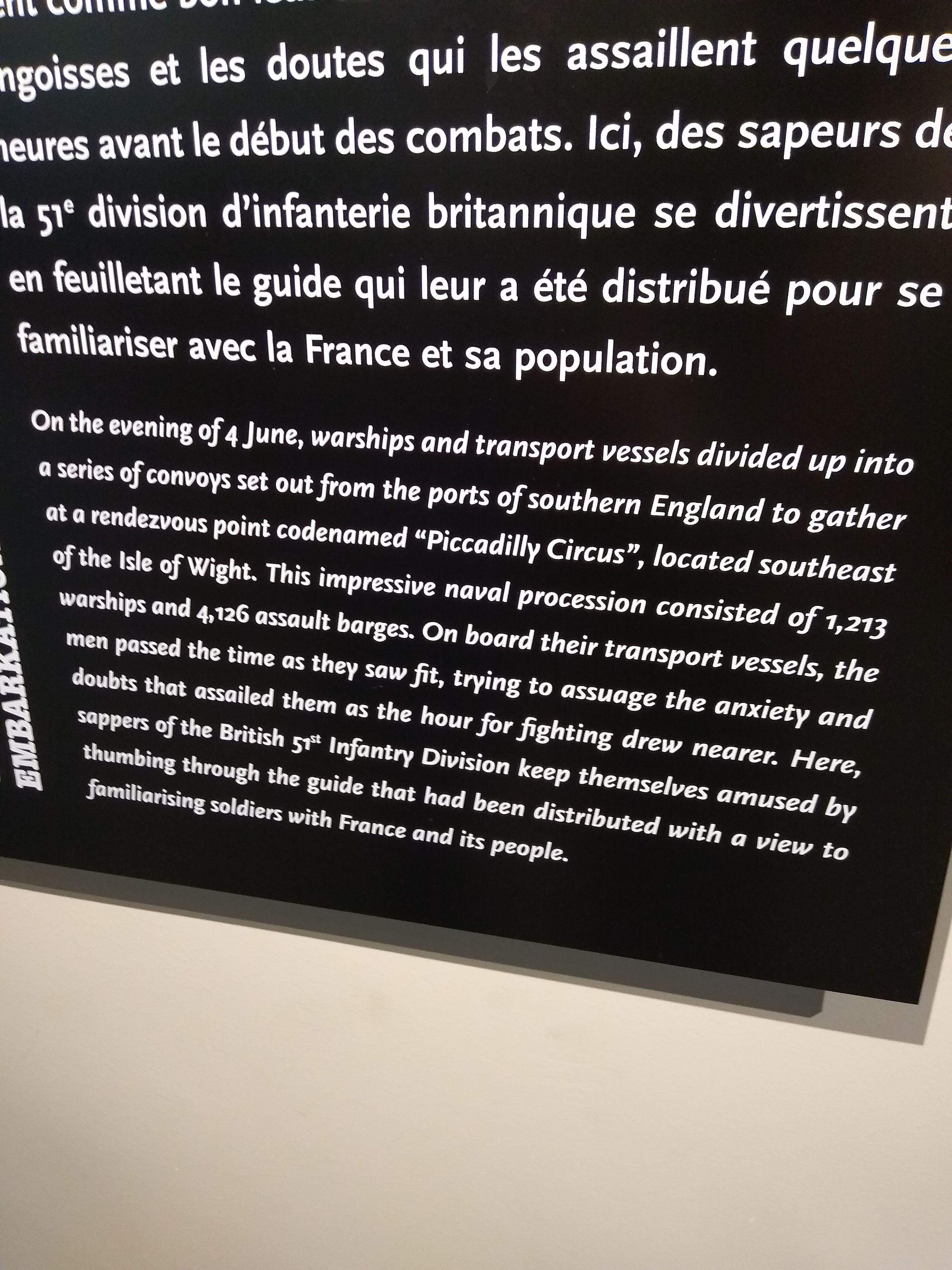Après une tournée des 82e et 101e sites jusqu'au pont Pegasus, aucune autre exposition ne s'est rapprochée de ce spectacle étonnant. C'était une surcharge de seigneur dans une pièce de cinéma 360 incroyablement conçue et magnifique, si vous visitez les plages, c'est un must... Après le spectacle, je suis allé au point de vue et deux chasseurs français nous ont survolés depuis la mer et tout le monde applaudissait, un de mes moments préférés de mon voyage de cinq jours, l'atmosphère sur la plage aussi est l'un des événements spéciaux. ici.