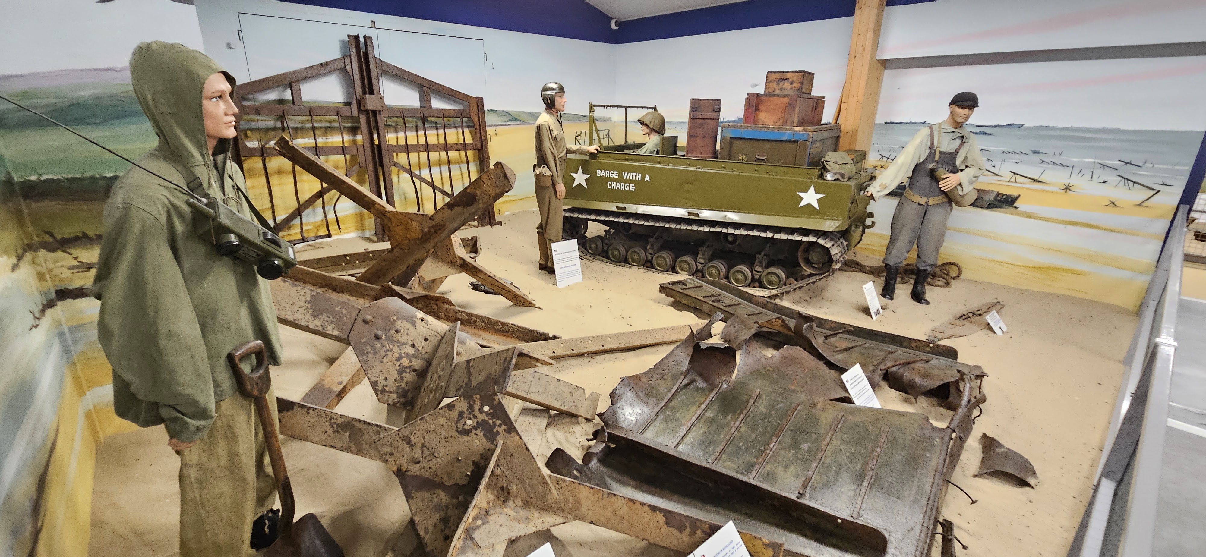 Plusieurs dioramas expliquant la situation lors du débarquement