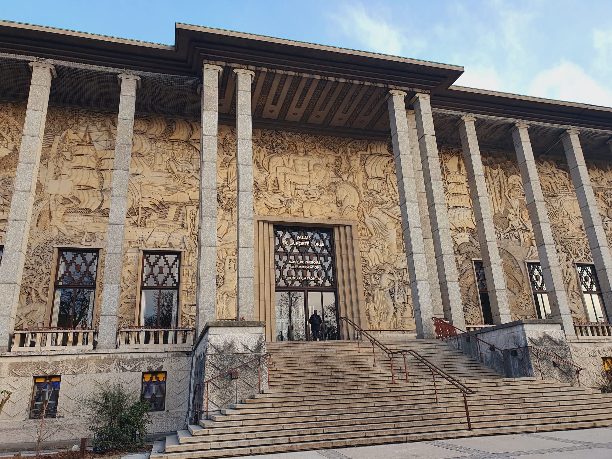 Très beau palais/ musée de l'extérieur. L'aquarium tropical est très riche en espèces. Je recommande 👌👌 Et pour la petite histoire: Construit à l'occasion de l'Exposition coloniale de 1931, le palais de la Porte-Dorée abrite à la fois le musée de l'Histoire de l'immigration et l'aquarium tropical. Ce dernier fut mis en place dans le but de présenter la faune aquatique des pays tropicaux et bénéficia des apports des gouverneurs qui ramenaient des espèces piscicoles à l'occasion de leur retour dans la capitale.